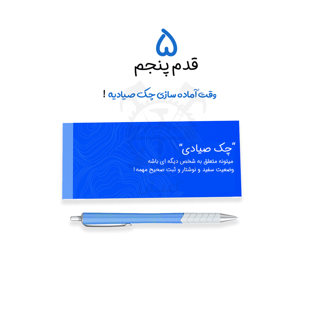 در مرحله پنجم انجام این امور ضروریست: مطالعه توضیحات صفحه پرداخت چکی و انتخاب نوع پرداخت ( دو ماهه یا چهار ماهه ) و سپس آپلود تصویر چک ها و تصویر ثبت چک ها بهمراه تصویر کارت ملی و در نهایت کلیک روی دکمه ارسال.