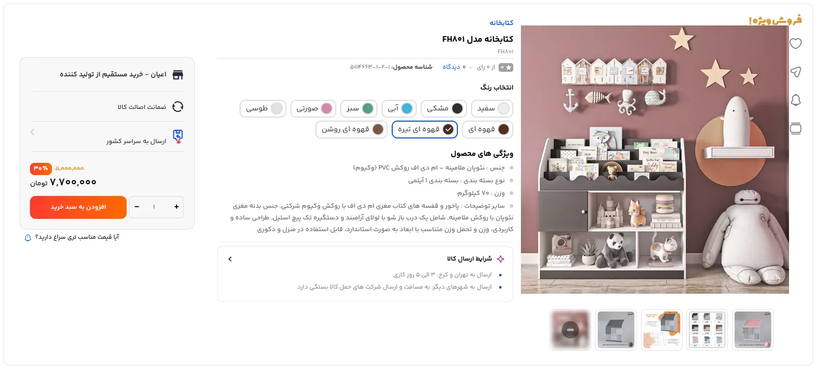 و از میان تنوع محصولات محصولی که پسندید را انتخاب کنید تا وارد صفحه محصول شوید برای مثال کتابخانه مدل FH801