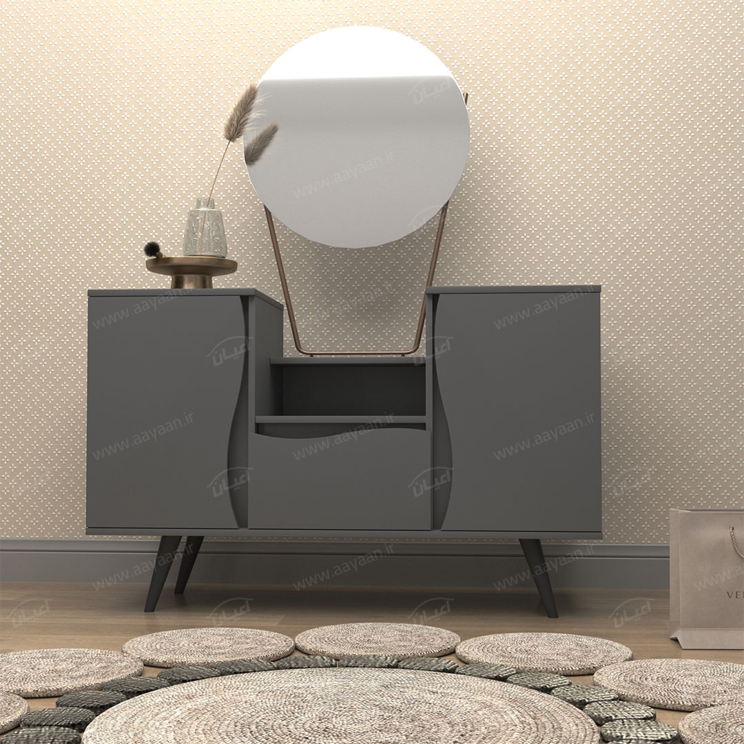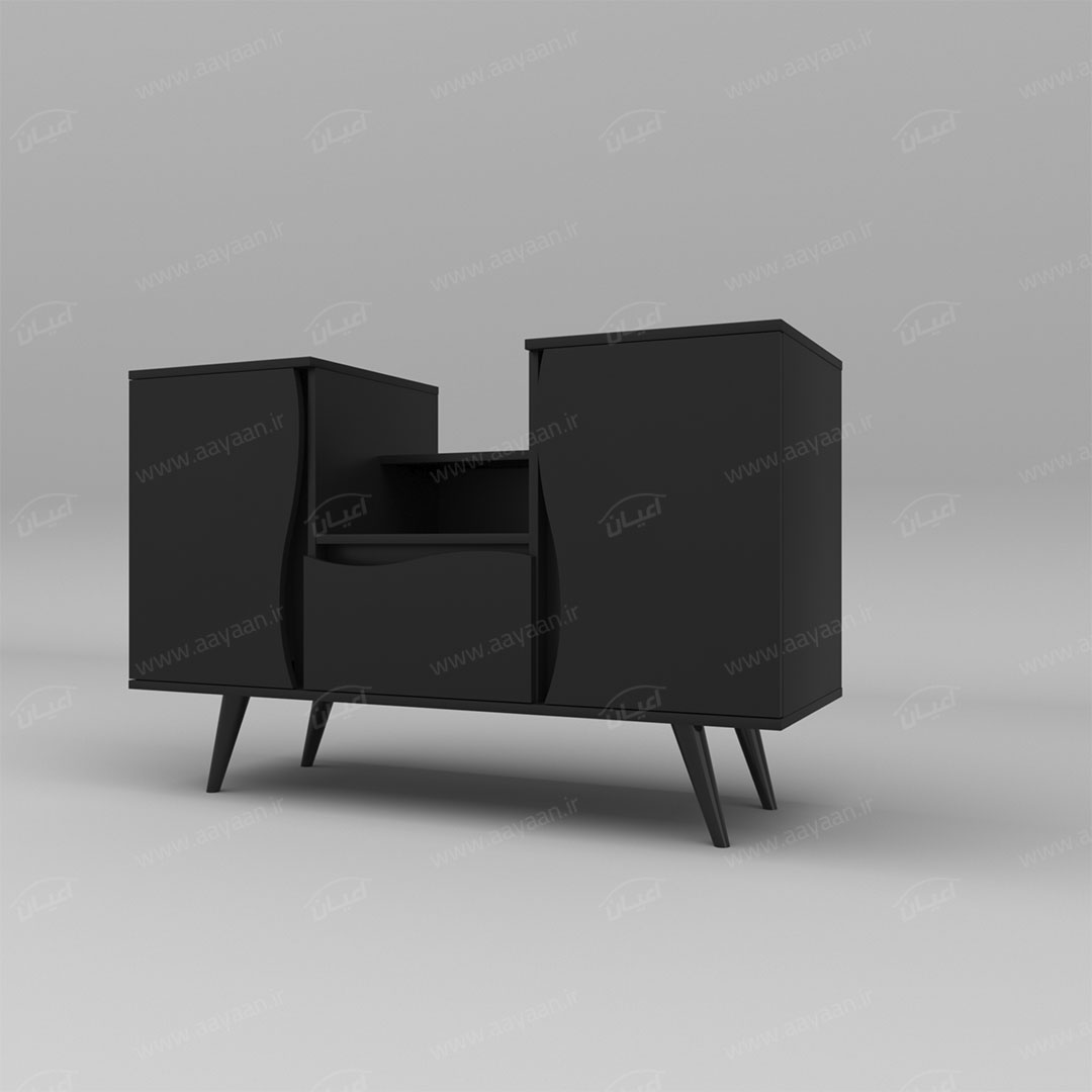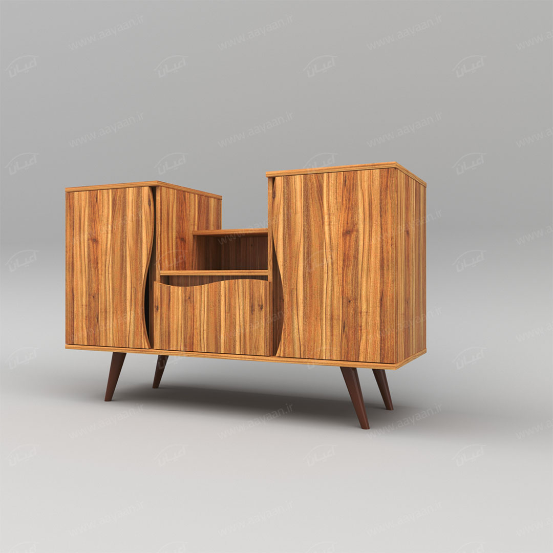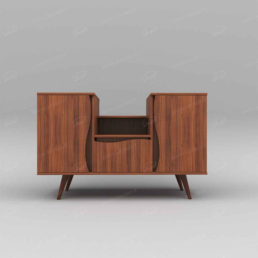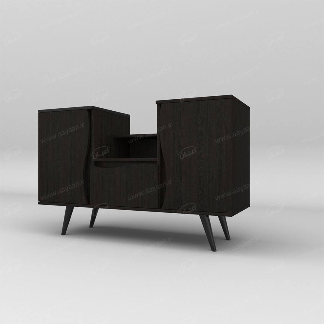 کنسول اعیان مدل FH577دارای دو فضای کمدی، مجموعا دارای پنج طبقه درب به صورت آرامبند می باشد، دارای یک کشو با ریل سه تکه درب ها به صورت سی ان سی منحنی می باشد و به عنوان دستگیره این طراحی بر روی درب انجام شده است و جای دست بر روی کار تعبیه شده است و فرمی مدرن را به کار داده است-پایه ها به صورت مخروطی جدا شونده بوده که همراه با کار ارسال و بایستی بر روی بدنه نصب شود