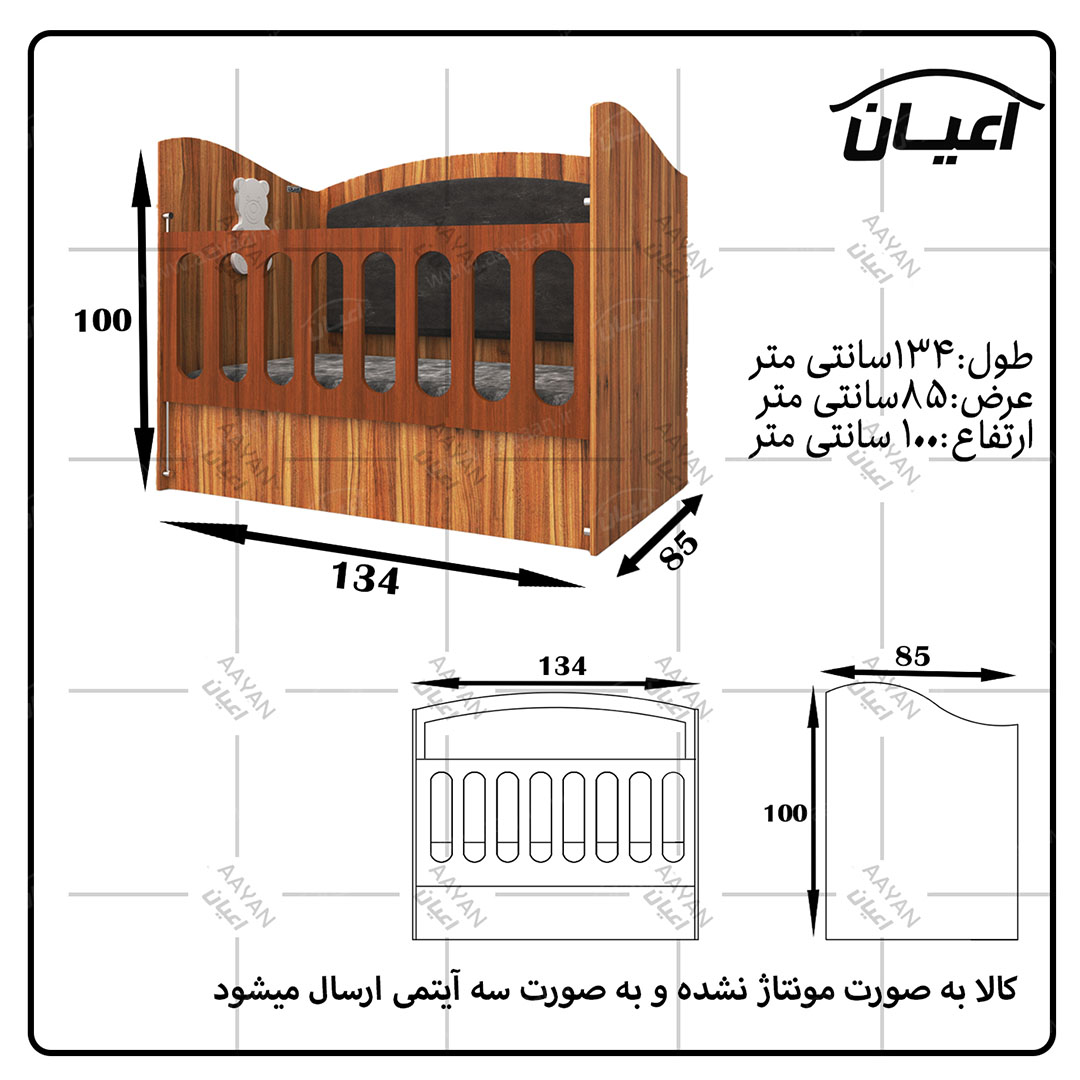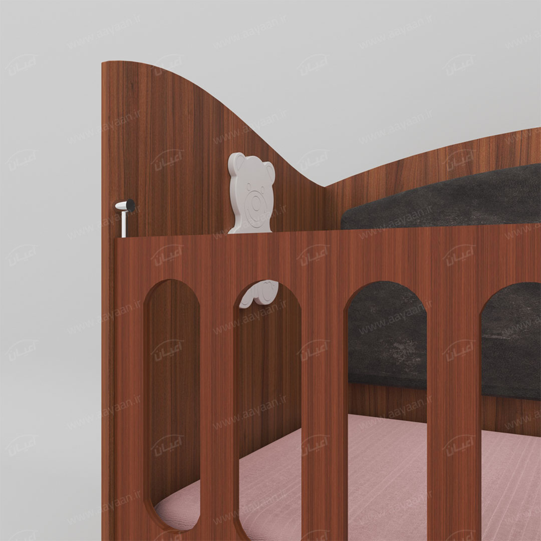 تختخواب کودک اعیان مدل FH598تخت خواب کودک اعیان-جنس حفاظ تخت مغزی ام دی اف با روکش وکیوم-یک سمت کلگی دارای طرح تدی از داخل است-تخت دارای پشت بند می باشد-پشتبند دارای لمسه میباشد-جنس لمسه پارجه مبلی رنگ طوسی است-سطح ضدخش-کفی نئوپان خام-نرده های حفاظ پی وی سی می باشد-حفاظ یک سمت ثابت و سمت دیگر متحرک( آسانسوری) است-مناسب تشک 130×70-تشک همراه محصول ارائه نمی شود-کالا به صورت مونتاژ نشده ارسال می شود