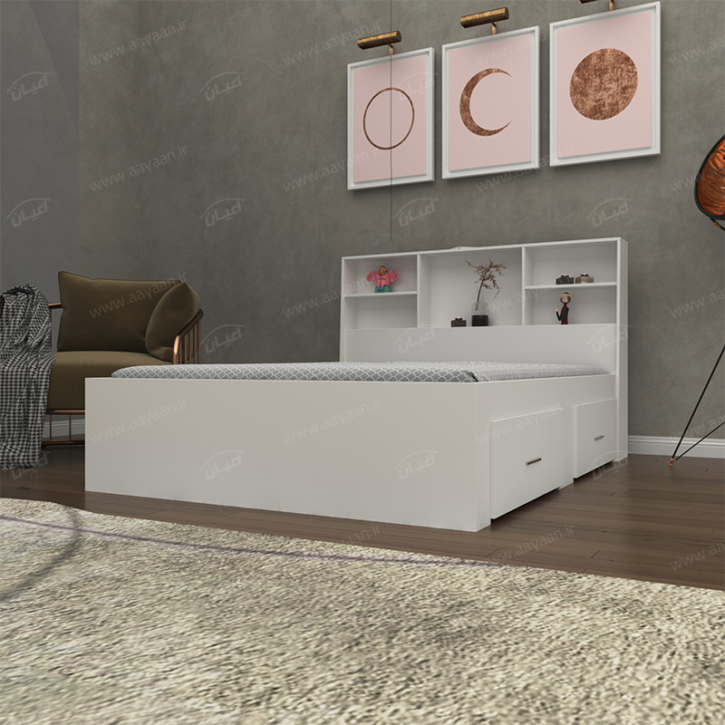 • سایر توضیحات : تشک همراه محصول ارائه نمی شود، کالا به صورت مونتاژ نشده ارسال می شود, دارای پنج فضا در قسمت کلگی بالا, دارای دو کشو باز شو چرخدار, طراحی ساده و کاربردی، وزن متناسب با ابعاد، تحمل وزن متناسب با ابعاد و به صورت استاندارد, مناسب تشک 160×225