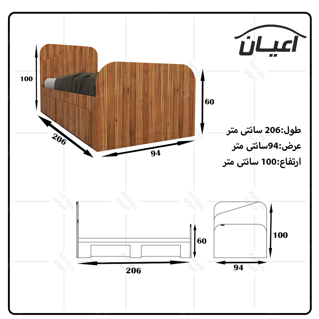 تخت خواب یکنفره اعیان مدل FH546 سایز 90×200 سانتی مترمشخصات تخت خواب |