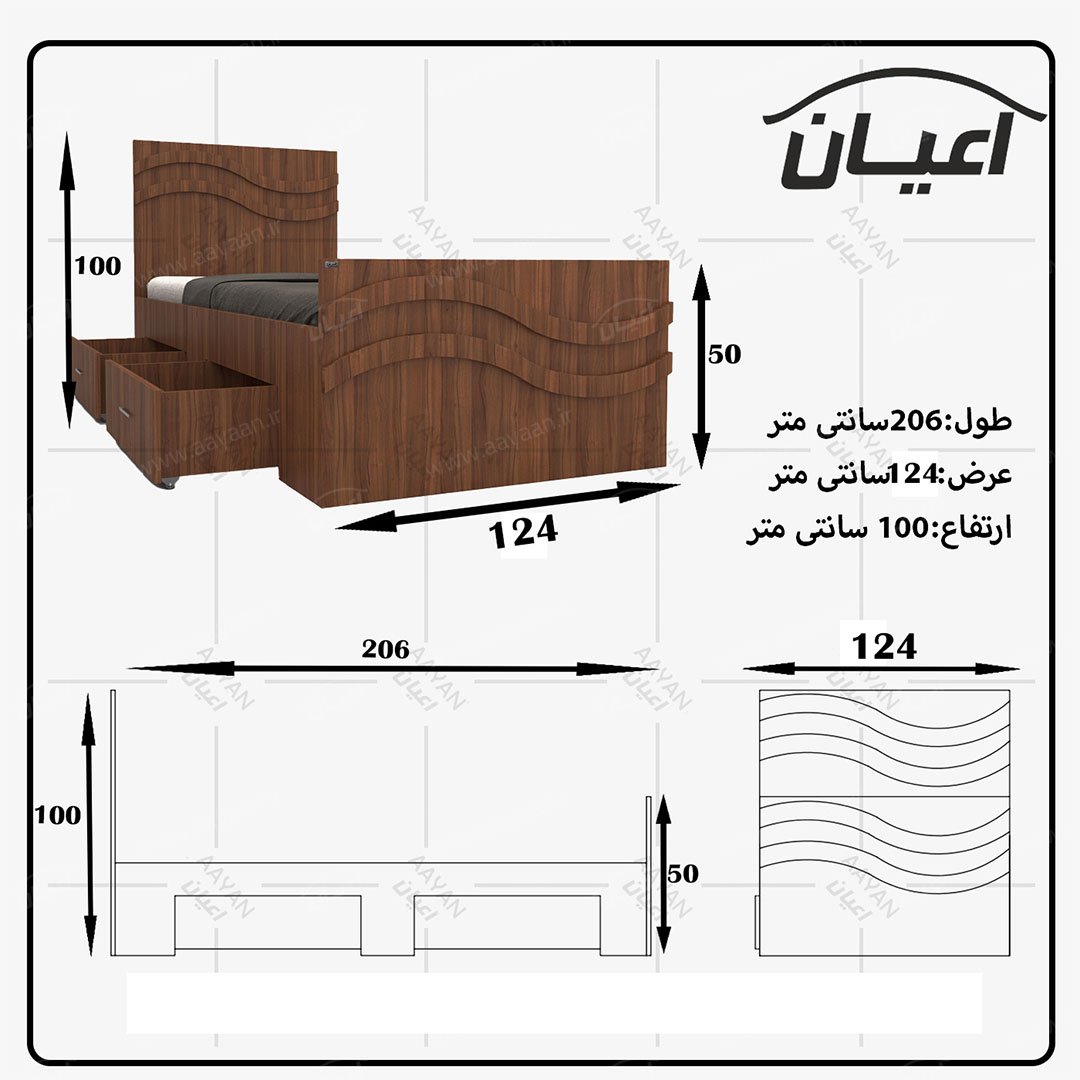 تخت خواب یکنفره اعیان مدل FH582 سایز 120×200 سانتی مترمشخصات تخت خواب |