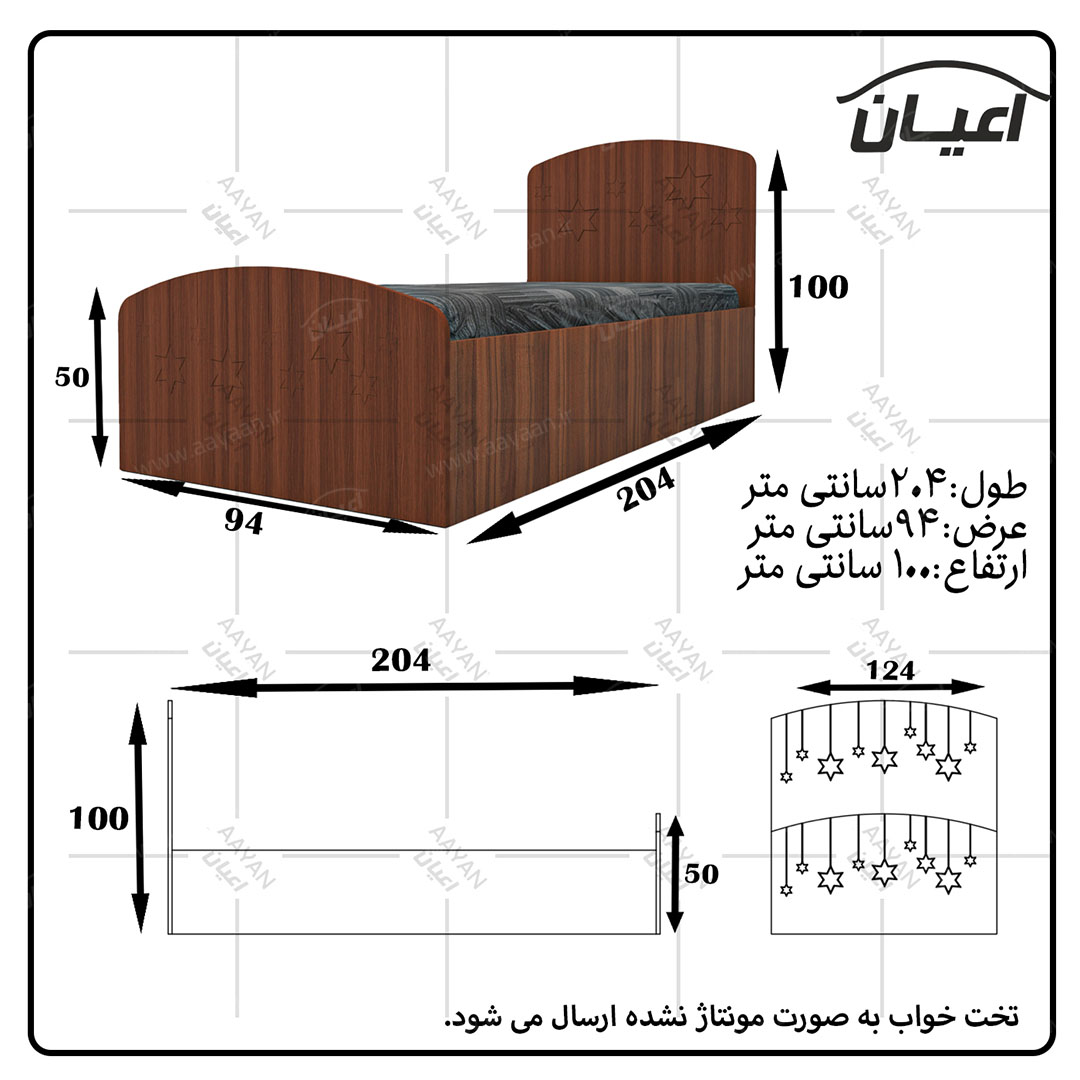 تخت خواب یکنفره اعیان مدل FH595 طرح ستاره سایز 90×200 سانتی مترمشخصات تخت خواب |