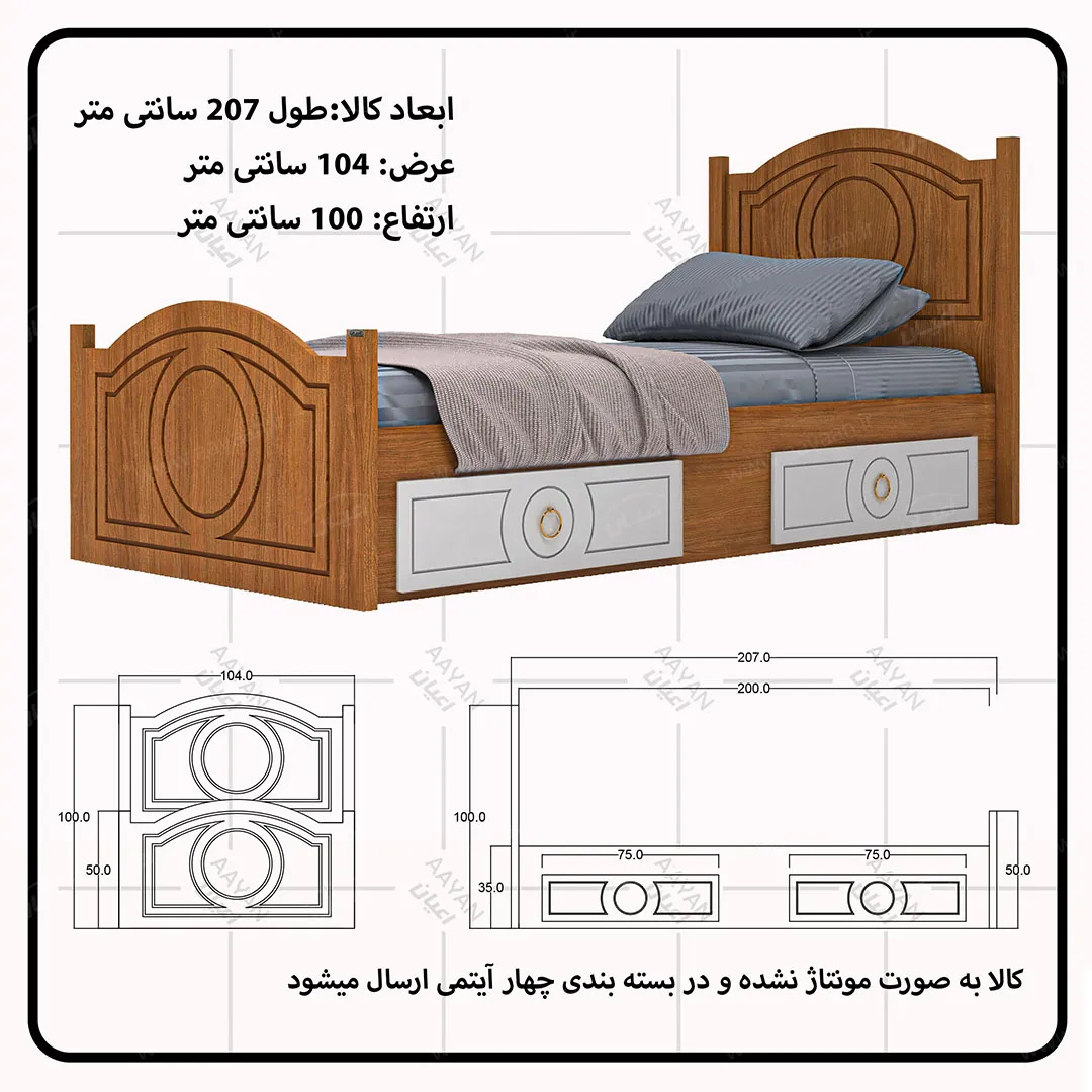 تخت خواب یکنفره اعیان مدل FH663 (موجودی انبار)| مشخصات تخت خواب |