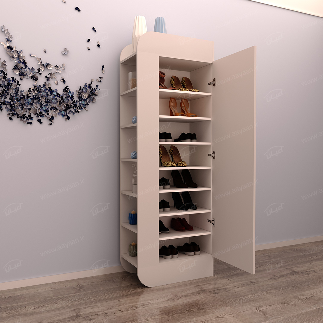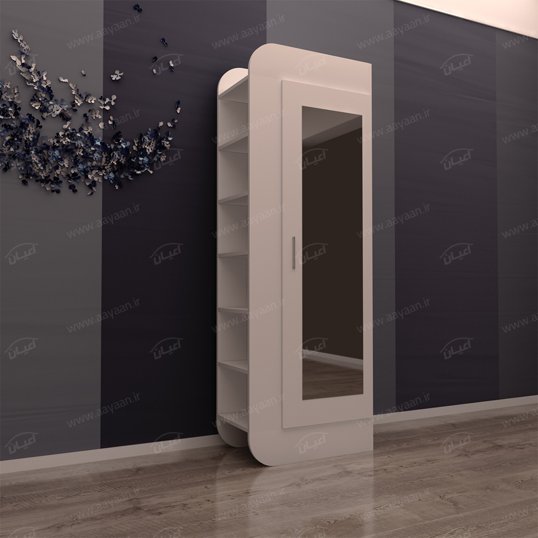 جاکفشی اعیان مدل FH494بسیار کاربردی و جادار-دارای یک درب کمدی (هفت طبقه و هشت فضا)-سمت چپ کالا طبق تصاویر فضای دکوری شامل هفت طبقه می باشد و یک درب آینه دار با دستگیره استیل دو پیچ-کالا به صورت مونتاژ شده و به صورت تک آیتمی است