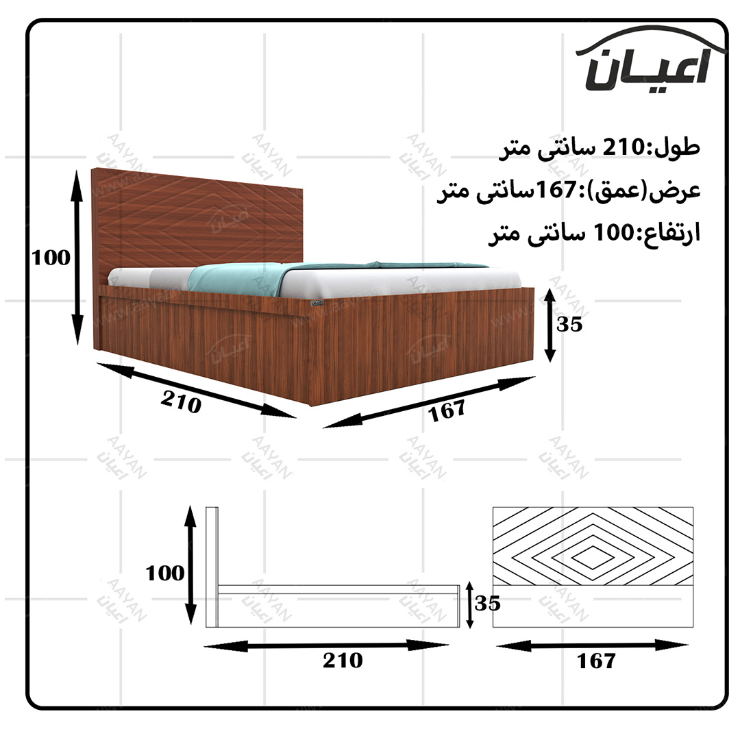سرویس خواب دونفره اعیان مدل FH450 سایز 160×200 سانتی متر سه تکه