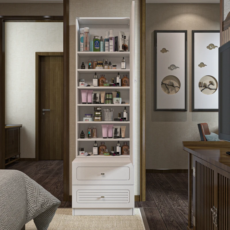 دارای 6 طبقه و 7 فضای مجزا برای قرار دادن لوازم آرایشی