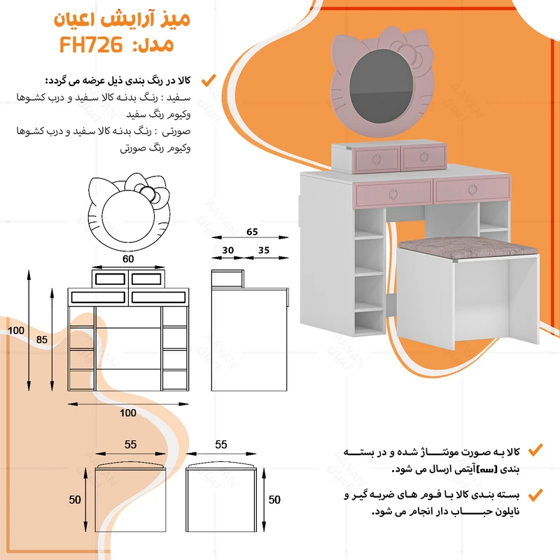 میز آرایش اعیان مدل FH726 مجموعه سه عددیمشخصات محصول |