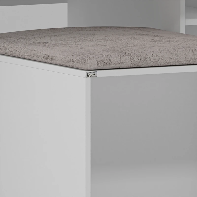جنس صندلی نئوپان ملامینه و دارای نشیمن لمسه با پارچه مبلی کرمی رنگ
