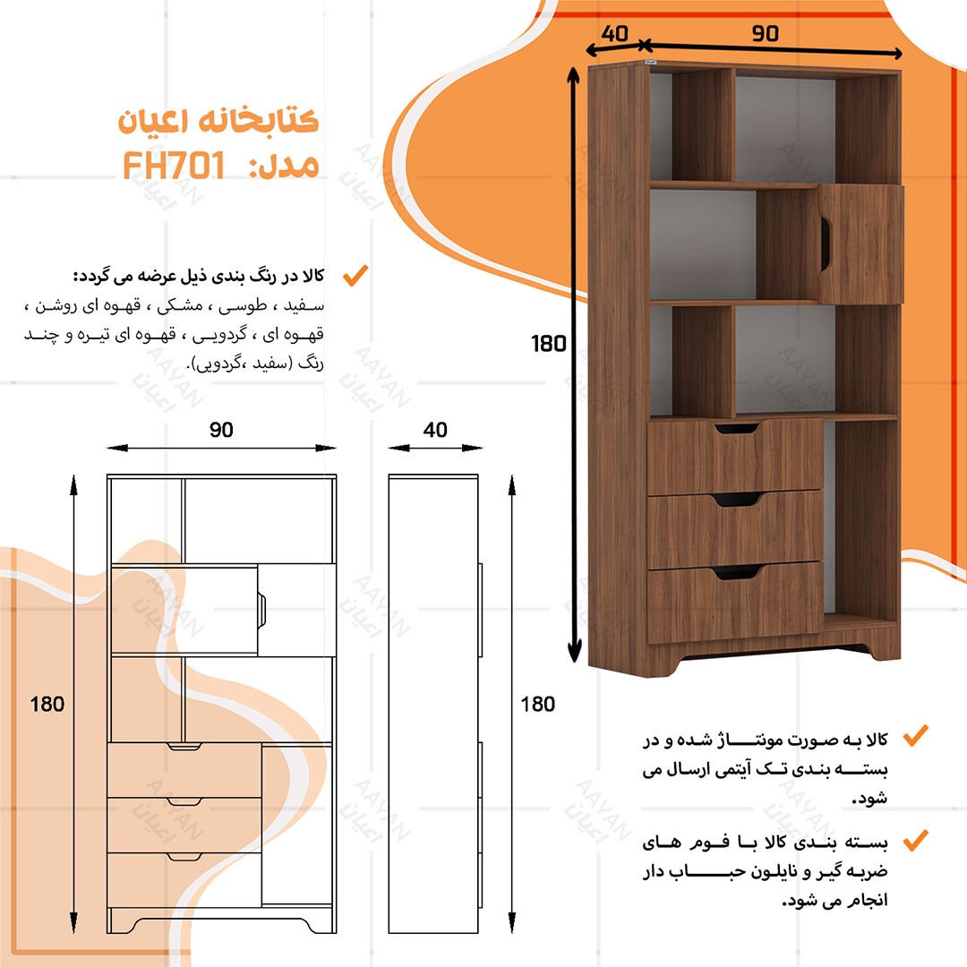 کتابخانه اعیان مدل FH701 (موجودی انبار)| مشخصات دیگر |