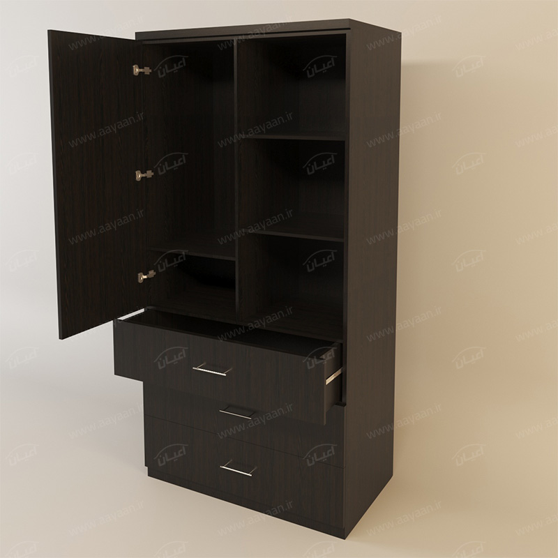 کمد لباس اعیان مدل FH213سطح ضدخش-طراحی ساده و کاربردی-وزن متناسب با ابعاد-قابل استفاده در منزل و اتاق خواب می باشد-تحمل وزن متناسب با ابعاد و به صورت استاندارد-یک درب با لولای آرامبند و دستگیره استیل دو پیچ و سه کشو باز شو با ریل سه تکه و سه فضای کمدی-بسته بندی کالا به صورت تک آیتمی است-کالا به صورت مونتاژ شده ارسال می شود