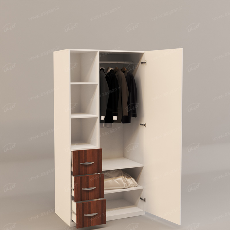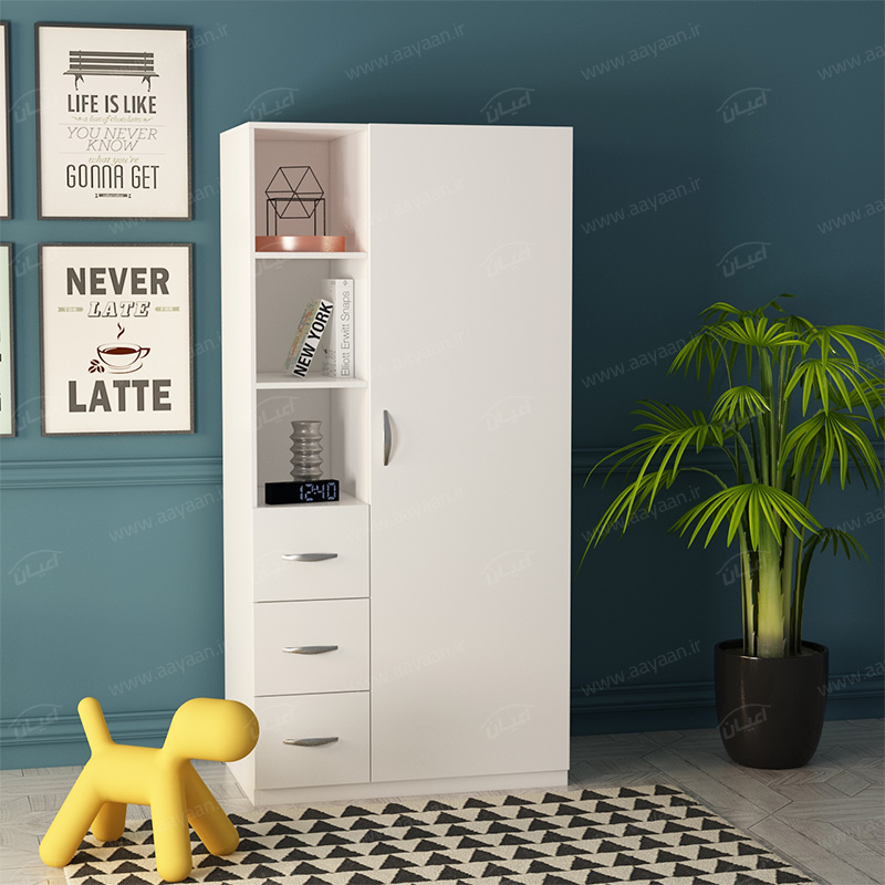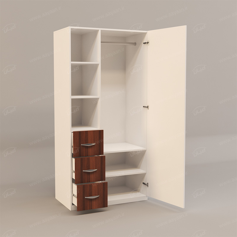 کمد لباس اعیان مدل FH263سطح ضدخش-طراحی ساده و کاربردی-وزن متناسب با ابعاد-قابل استفاده در منازل و اتاق خواب-تحمل وزن متناسب با ابعاد و به صورت استاندارد-یک درب با لولای آرامبند و دستگیره استیل دو پیچ و سه کشو باز شو با ریل سه تکه-نوار پی وی سی-دارای رگال لباس و فضای کمدی می باشد-بسته بندی کالا به صورت تک آیتمی است-کالا به صورت مونتاژ شده ارسال می شود
