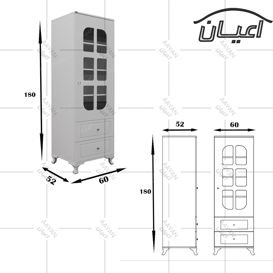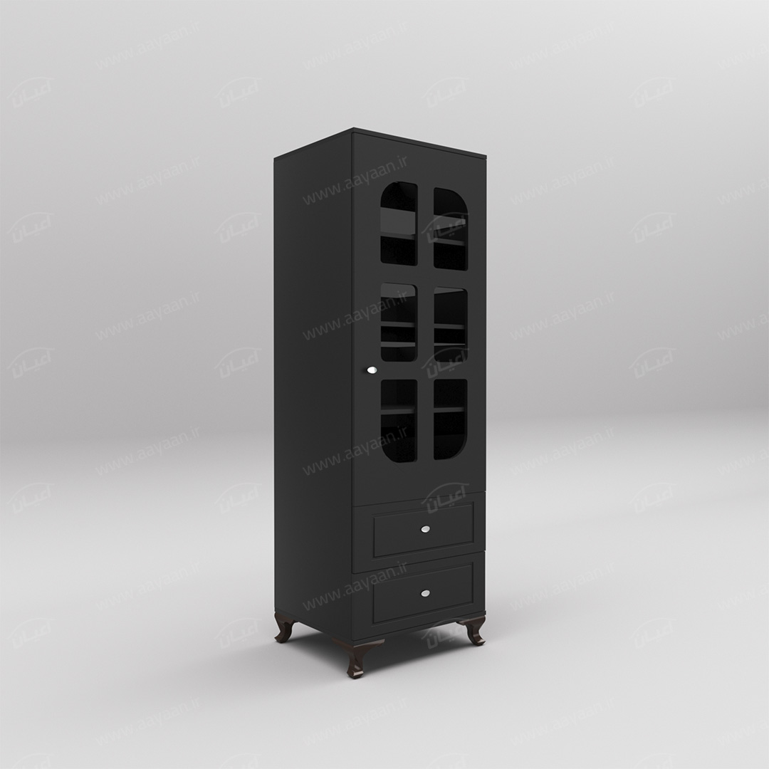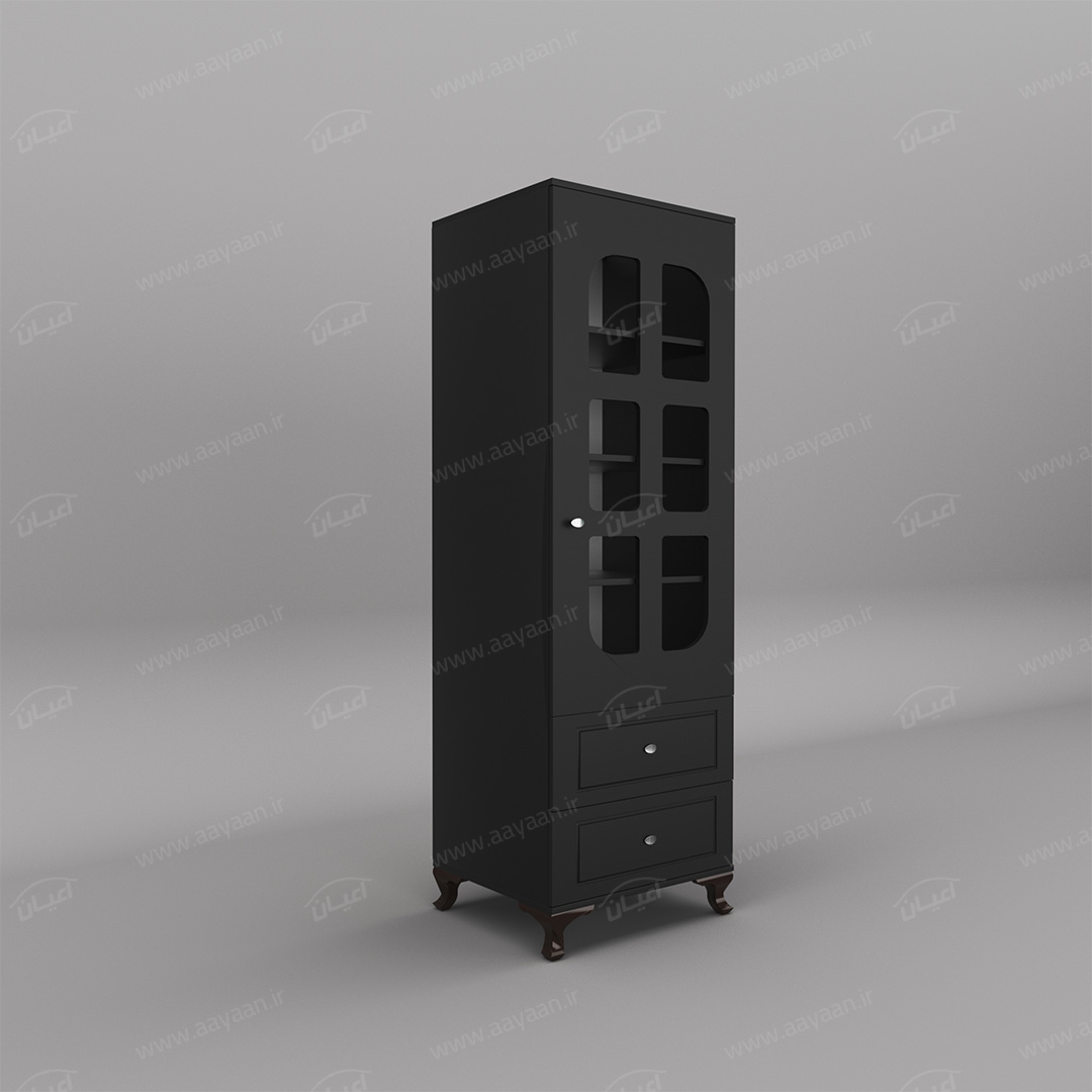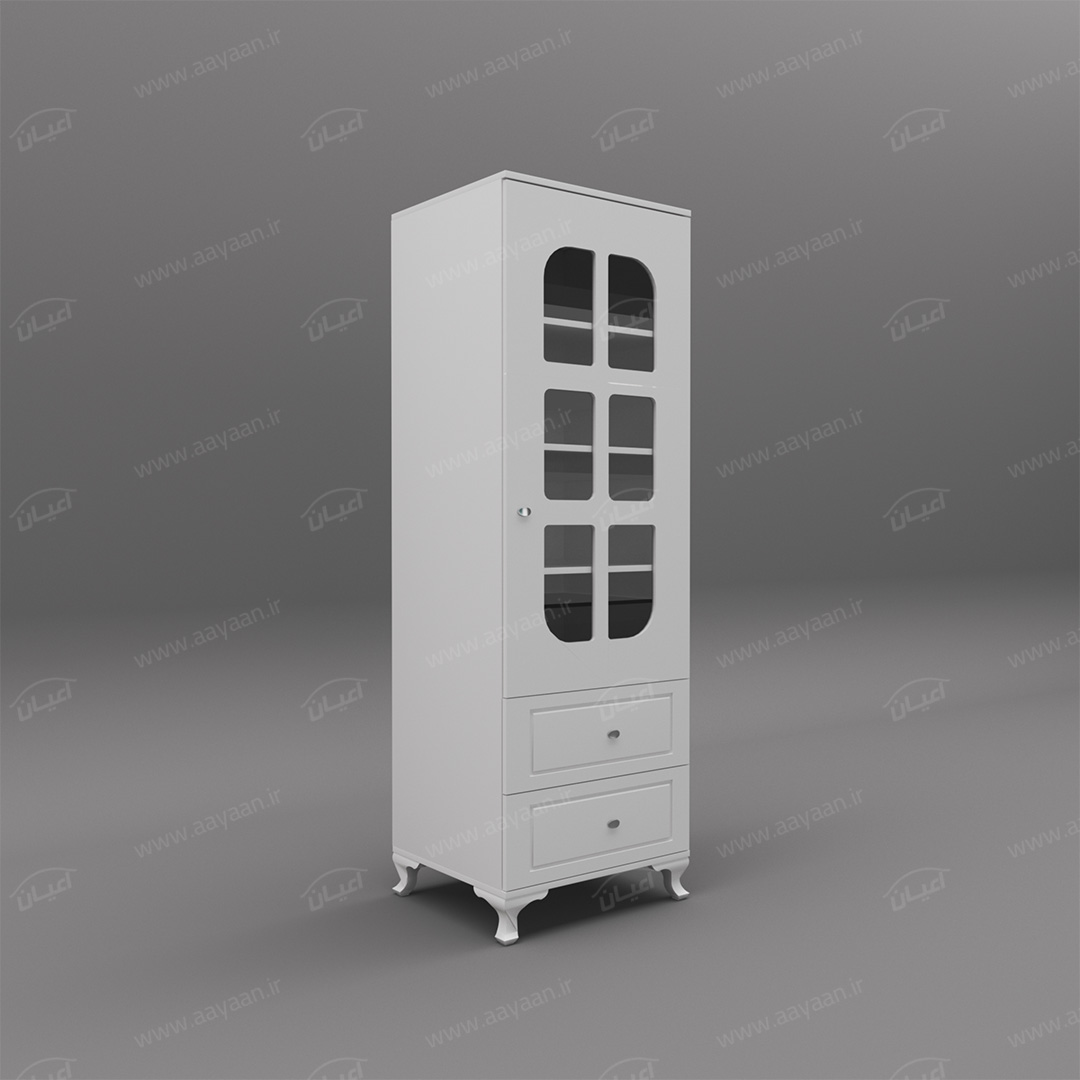 کمد لباس اعیان مدل FH456بسیار کاربردی و جادار-دو کشوی بازشو با ریل های سه تکه-دارای یک درب کمدی با شیشه در بخش ویترین و لولای آرامبند-دارای سه طبقه و چهار فضا-دستگیره ها به صورت استیل تک پیچ-بسته بندی کالا به صورت تک آیتمی است-کالا به صورت مونتاژ شده ارسال می شود