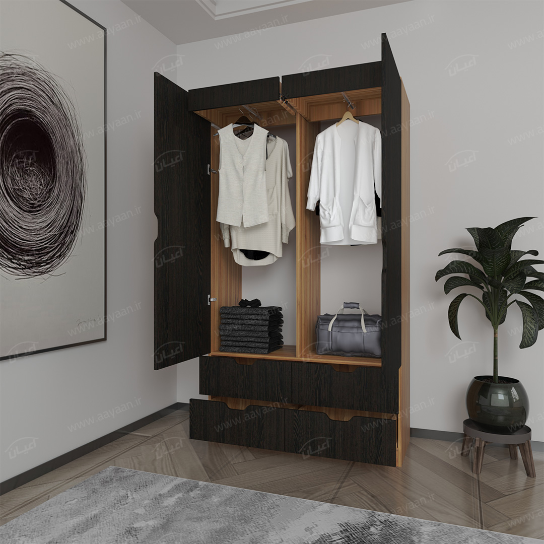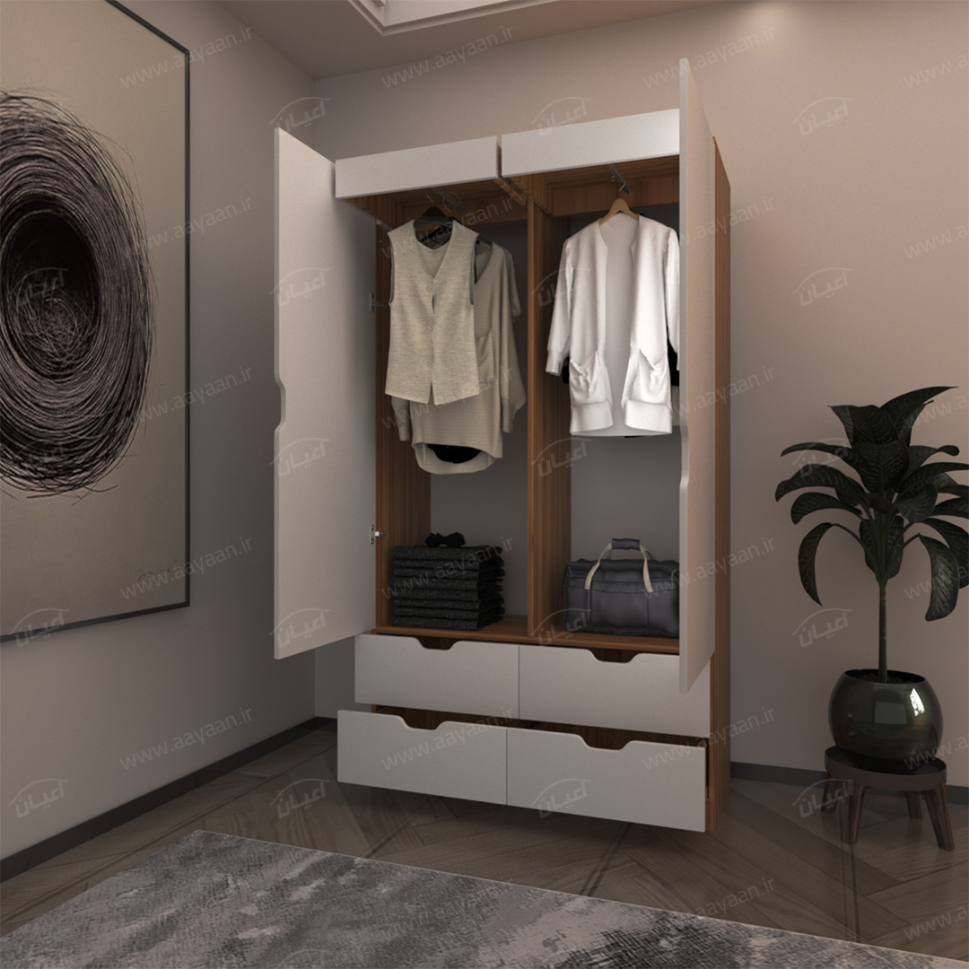 کمد لباس اعیان مدل FH457کمدلباس اعیان مدل FH457-محصولی چندمنظوره و کاربردی- مناسب برای فضاهای با ابعاد محدود-دارای دو فضای رگال کشویی – درب ها به صورت آرام بند- دارای 4کشوی ریلی جادار – جنس نئوپان ملامینه شرکتی – ورق پشت کار سه میل سفید – دستگیره ها به صورت سی ان سی- ابعاد کالا و رنگ بندی کار در تصاویر آلبوم و مشخصات موجود است