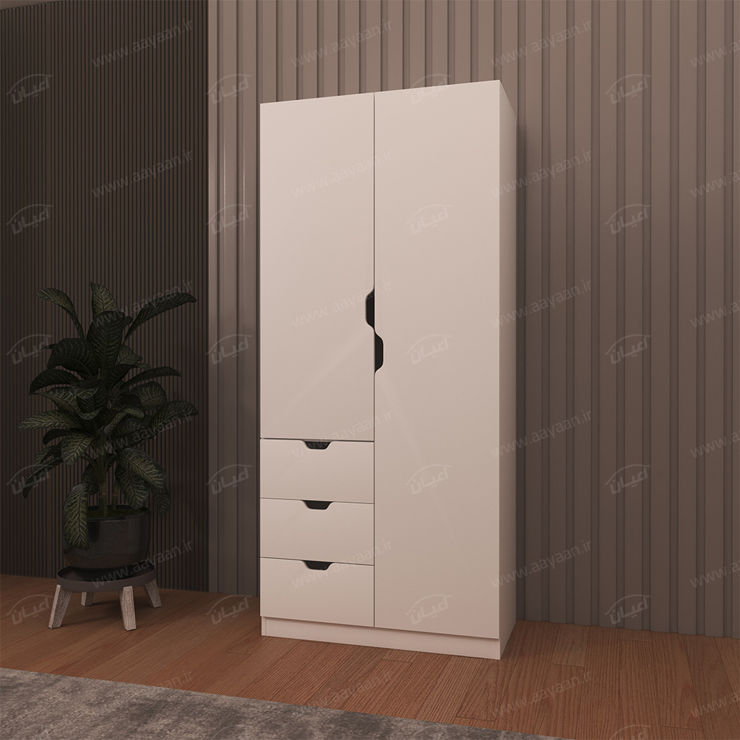 کمد لباس اعیان مدل FH466کمد لباس اعیان.جنس نئوپان ملامینه شرکتی است.محصولی بسیار کاربردی و جادار بوده و این کالا مشابه کدمحصول پرطرفدار ((کمدلباس اعیان مدل FH166)) است که با بازنگری طراحی درب ها و دستگیره ها تبدیل به محصولی مدرن شده است. این کالا دارای دو درب کمدی و فضای آویز لباس است همچنین یک طبقه در فضای رگال و در قسمت بالا کار شده است. این کمد لباس اعیان دارای سه کشوی کاربردی و جادار با ریل ساچمه ای سه تکه است