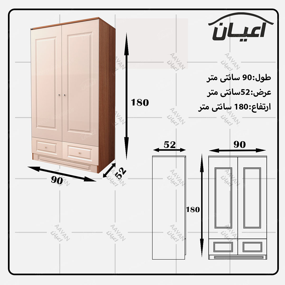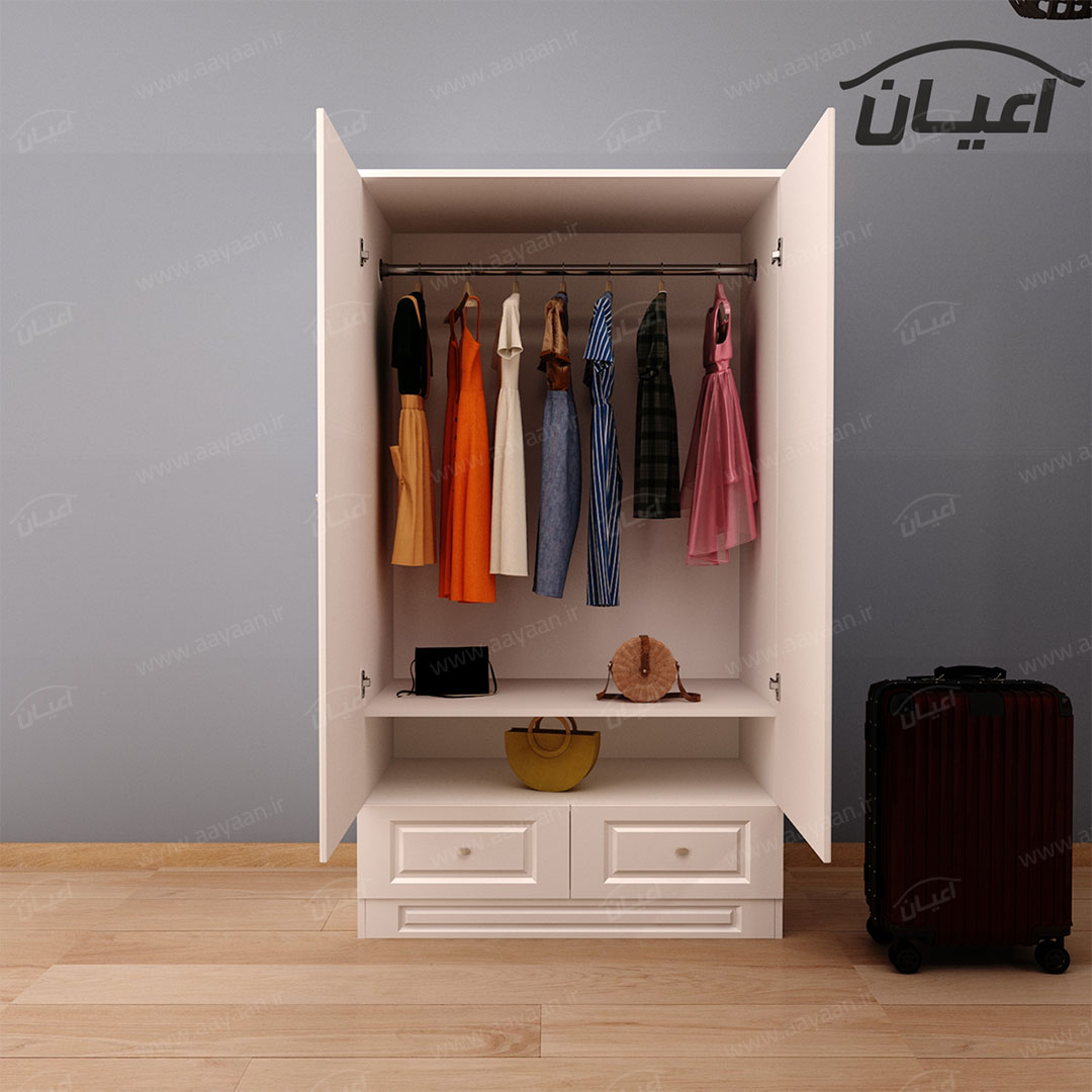 کمد لباس اعیان مدل FH536کمد لباس اعیان.کاربردی و جادار.وزن متناسب با ابعاد و به صورت استاندارد.دو کشوی بازشو با ریل های سه تکه.دارای یک طبقه متحرک .جنس ملامینه و وکیوم