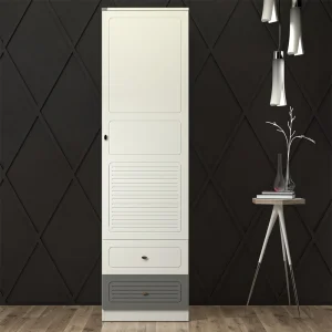 کمد لباس اعیان ، جنس بدنه : مغزی نئوپان با روکش ملامینه ، جنس درب : مغزی ام دی اف با روکش وکیوم ، دارای دو طبقه و سه فضای مجزا جهت قرار دادن لوازم (کیف ، کفش ، لباس و…) دارای رگال لباس ، درب کالا دارای طراحی ساده و شیک منحصر به برند اعیان می باشد ، لولای استفاده شده در درب به صورت آرام بند است ، این کالا را فقط با برند و لوگوی اعیان تهیه کنید ، این کالا در رنگ بندی 🙁 سفید ، طوسی ،مشکی ، قهوه ای روشن ، قهوه ای (گردویی) ، قهوه ای تیره (ونگه) ، سبز ، آبی و صورتی) تولید و عرضه می گردد، در تمامی رنگ ها بدنه ی اصلی کالا سفید می باشد و معیار انتخاب رنگ ، رنگ درب کالا می باشد ، لطفا توجه کنید که همواره چند درجه اختلاف رنگ بین تصاویر بارگذاری شده و کالای ساخته شده وجود دارد.