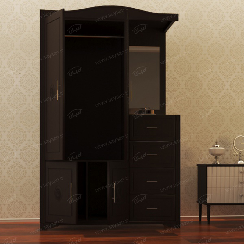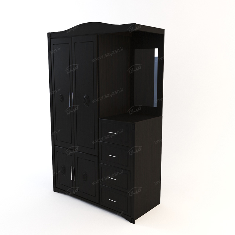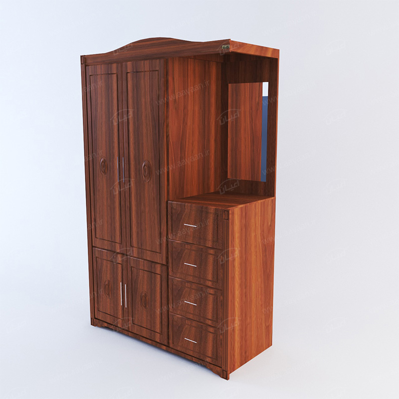 کمد چندمنظوره اعیان مدل FH196سطح ضدخش-طراحی ساده و کاربردی-وزن متناسب با ابعاد-چهار درب با لولای آرامبند و دستگیره استیل دو پیچ و چهار کشو باز شو با ریل سه تکه به همراه آینه می باشد-تحمل وزن متناسب با ابعاد و به صورت استاندارد-دارای رگال لباس می باشد-فضای کمدی و میله رگال-بسته بندی کالا به صورت تک آیتمی است-کالا به صورت مونتاژ شده ارسال می شود