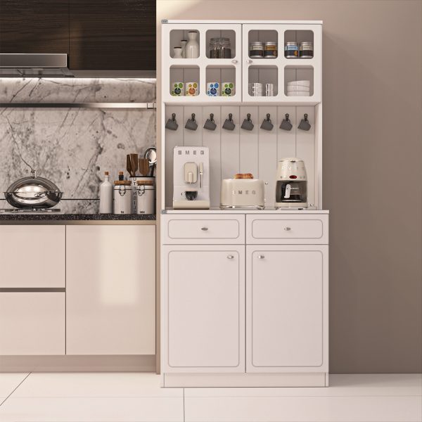 کنسول اعیان مدل کافه بار FH778کنسول کافه بار اعیان ، جنس بدنه مغزی نئوپان با روکش ملامینه ، جنس درب ها و نمای کار مغزی ام دی اف با روکش وکیوم و دارای طرح CNC، کالا به صورت دو تکه و فیکس نشده ارسال می شود ، قسمت پایین کار دارای یک میز کار ، دوکشو با بازشوی ریل سه تکه ساچمه ای و با دو درب کمدی می باشد که هر سمت دارای دو طبقه و سه فضا است ، در قسمت بالا دو بخش کمدی ویترینی با یک طبقه و دو فضا قرار داده شده است که دارای طراحی مدرن و خاص می باشد. دستگیره های کار به صورت تک پیچ و از جنس استیل می باشد، محصول دارای 8 عدد آویز لیوان کوچک در نمای کار است، این کالا در رنگ بندی (سفید ، طوسی ، مشکی ، قهوه ای روشن ، قهوه ای (گردویی) ، قهوه ای تیره (ونگه) و حالت چند رنگ (قهوه ای ، سبز) تولید و عرضه می گردد. این کالا را فقط با لوگو و برند اعیان تهیه کنید. لطفا توجه داشته باشید که همواره چند درجه اختلاف رنگ بین تصاویر بارگذاری شده و کالای ساخته شده وجود دارد.